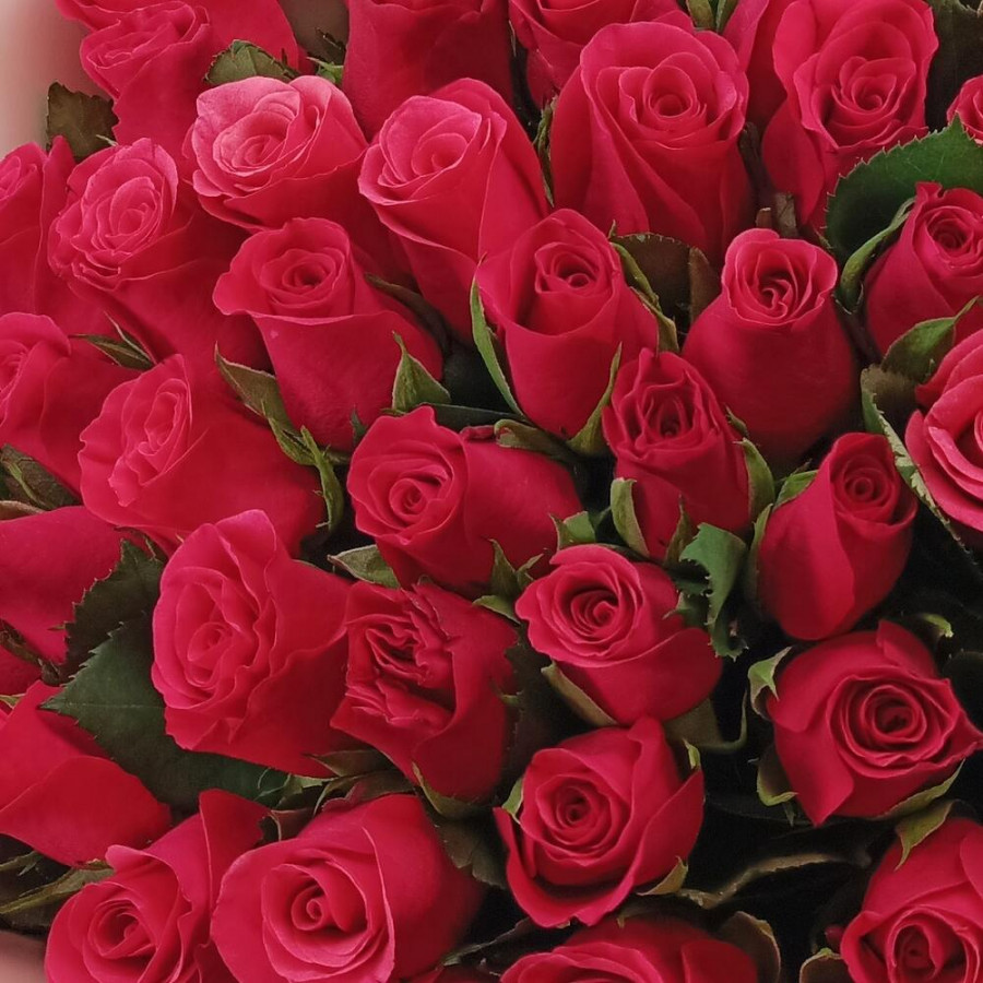 На фото букет из 51 малиновой розы. В составе: роза 51 шт, дизайнерская упаковка 1 шт, атласная лента 1 шт, . Все цветы свежие и ароматные, букет красиво оформлен и отлично подходит для подарка. Доступна доставка цветов или самовывоз.